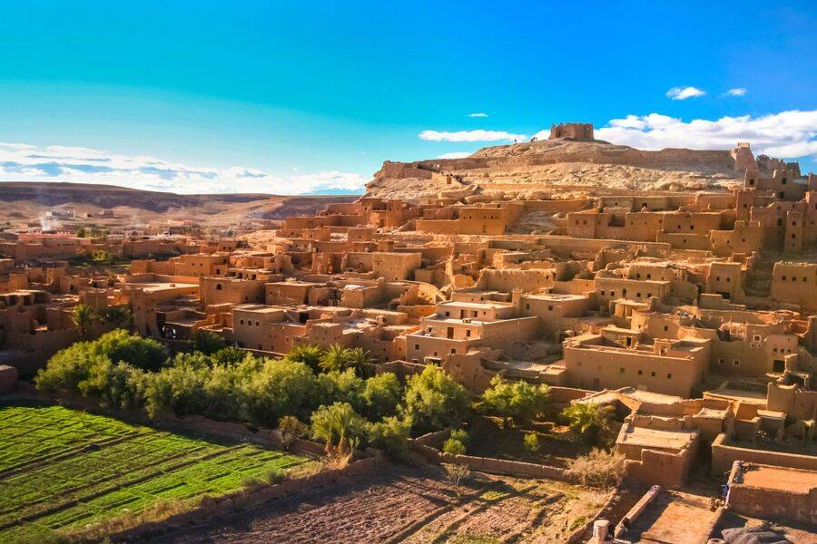 Travel through Skoura Oasis, home to beautiful kasbahs like Amridil Kasbah, then continue to Ouarzazate, the βHollywood of Africa,β to visit: